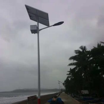 Pole >Total high:7meters >Material: high quality galvanized steel >Top diameter:60mm >Bottom diameter:160mm >Wall thickness:3mm Material:Q235 >With power coating. With solar panel bracket and battery support |